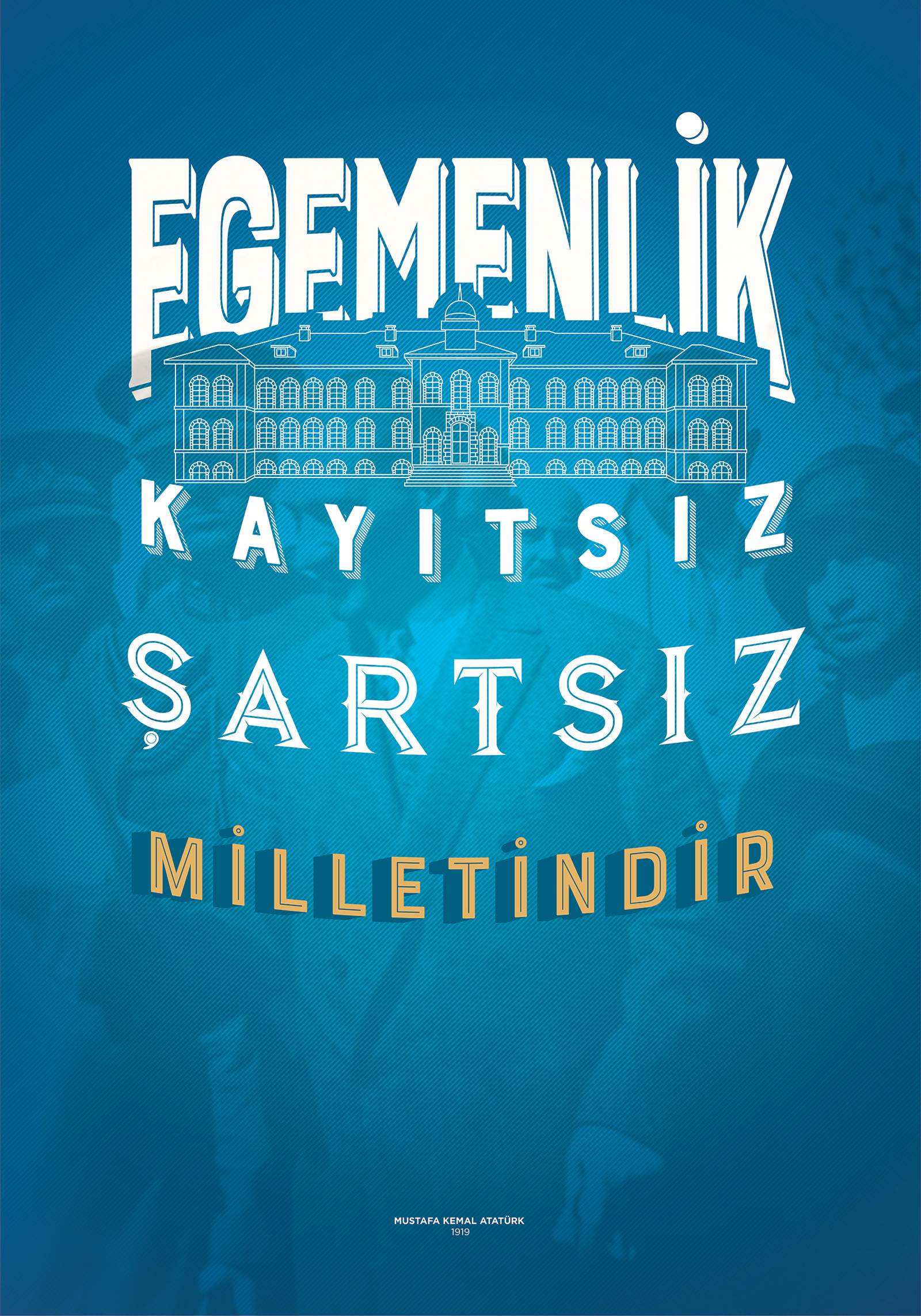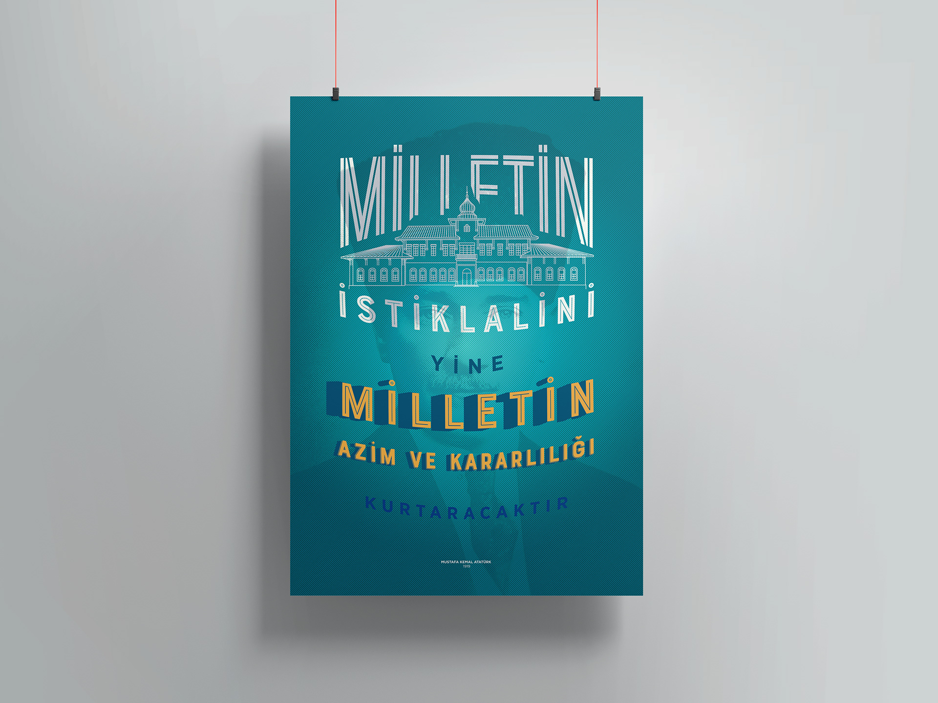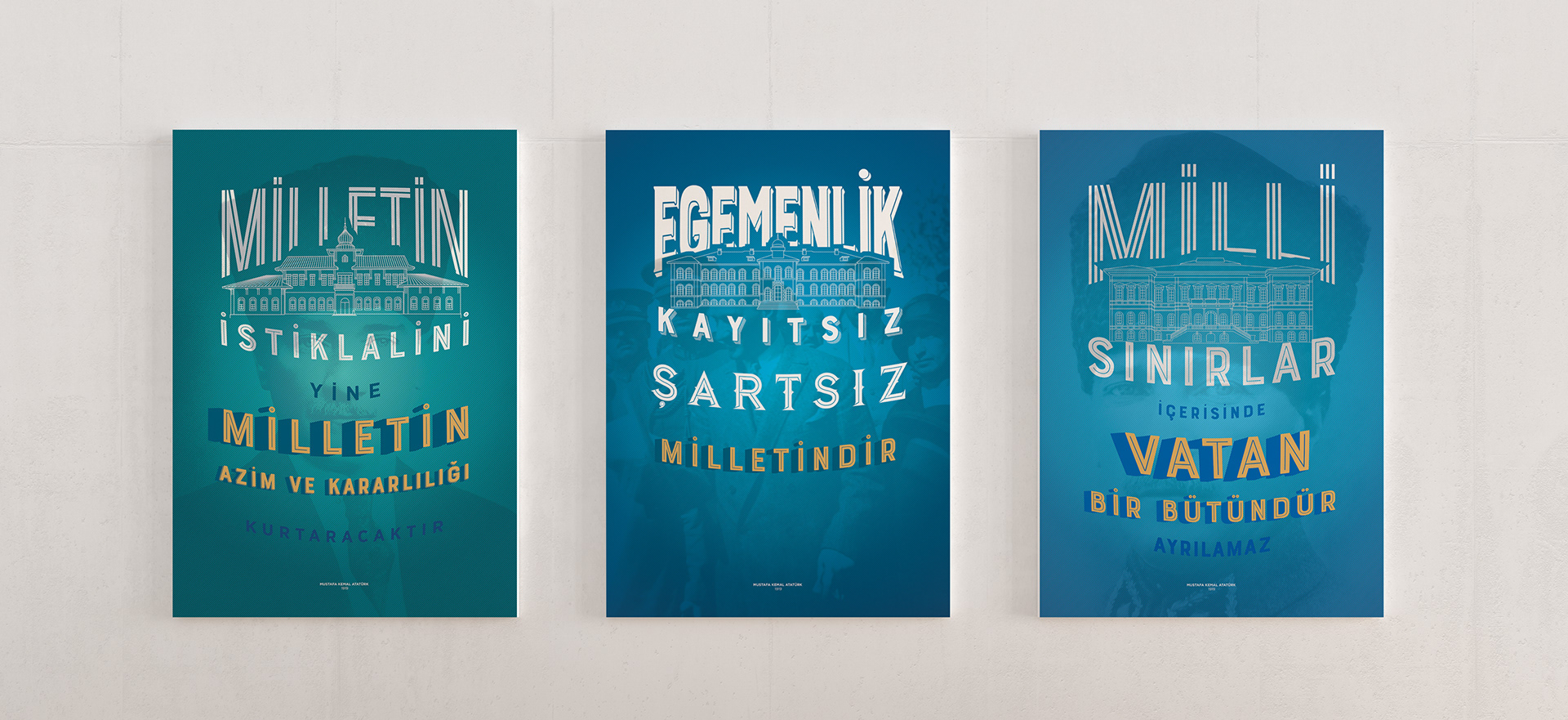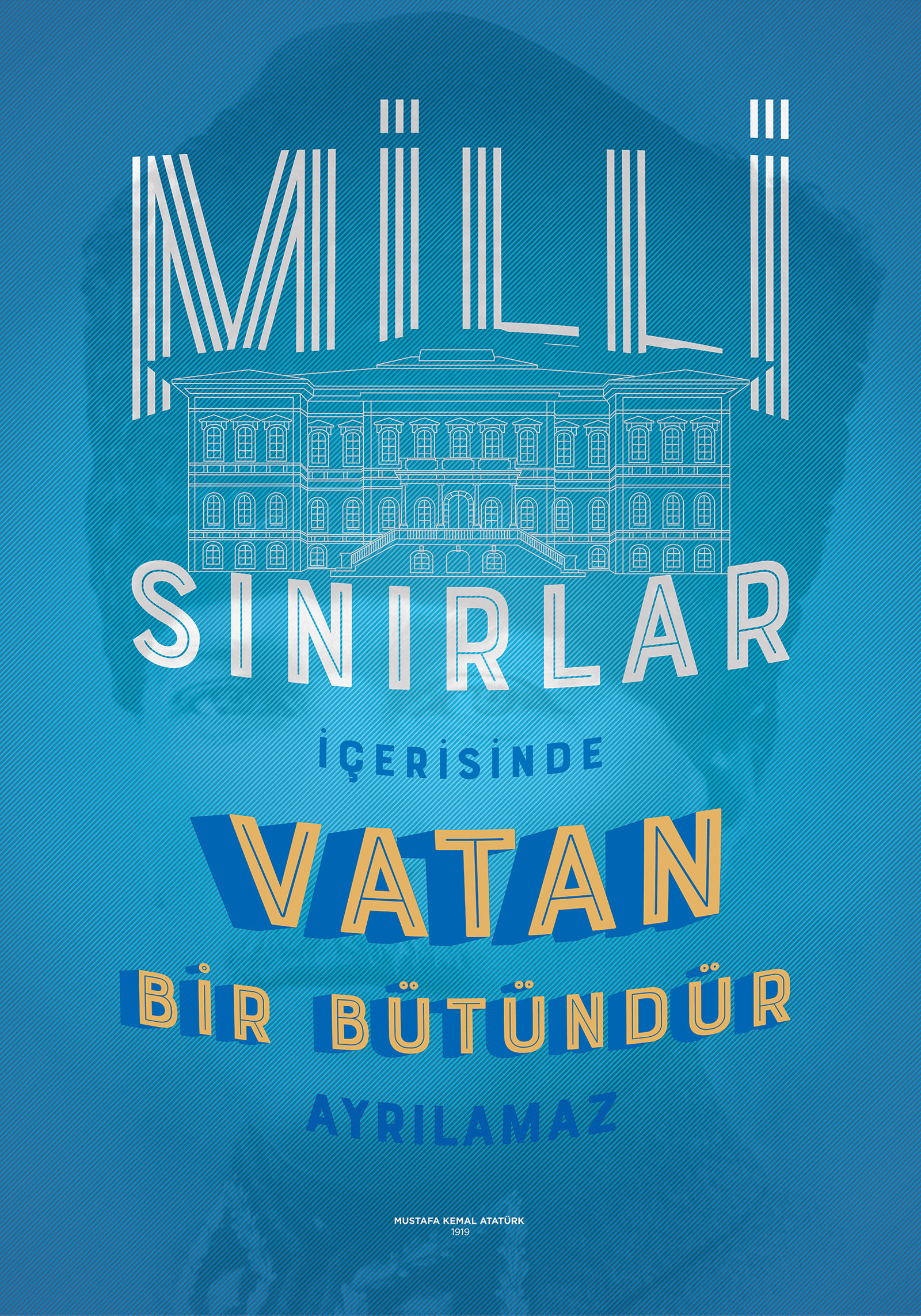 “Promise” is a personal exhibition that I opened in Istanbul Ziraat Bank Tünel Art Gallery in 2018. The exhibition consists of 25 posters. The works were produced based on the discourses of Mustafa Kemal Atatürk, the founder of Turkey. Posters were created with typography and visualization of valuable architectural structures, including the first and second national architectural movements. Most of the architectural structures featured in the posters have changed over time, some have been restored, some have been demolished and some have been rebuilt. In this context, I wanted to say a word with poster designs and leave a note for the future.