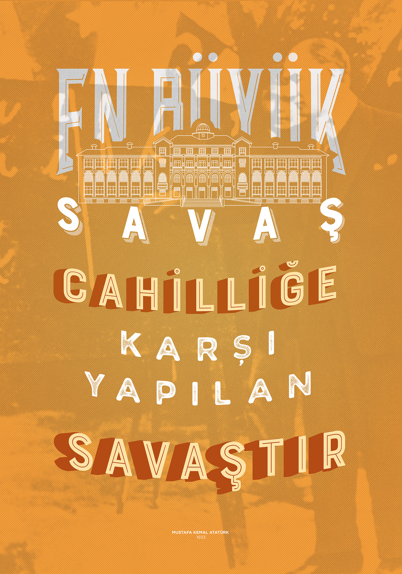 “Promise” is a personal exhibition that I opened in Istanbul Ziraat Bank Tünel Art Gallery in 2018. The exhibition consists of 25 posters. The works were produced based on the discourses of Mustafa Kemal Atatürk, the founder of Turkey. Posters were created with typography and visualization of valuable architectural structures, including the first and second national architectural movements. Most of the architectural structures featured in the posters have changed over time, some have been restored, some have been demolished and some have been rebuilt. In this context, I wanted to say a word with poster designs and leave a note for the future.
