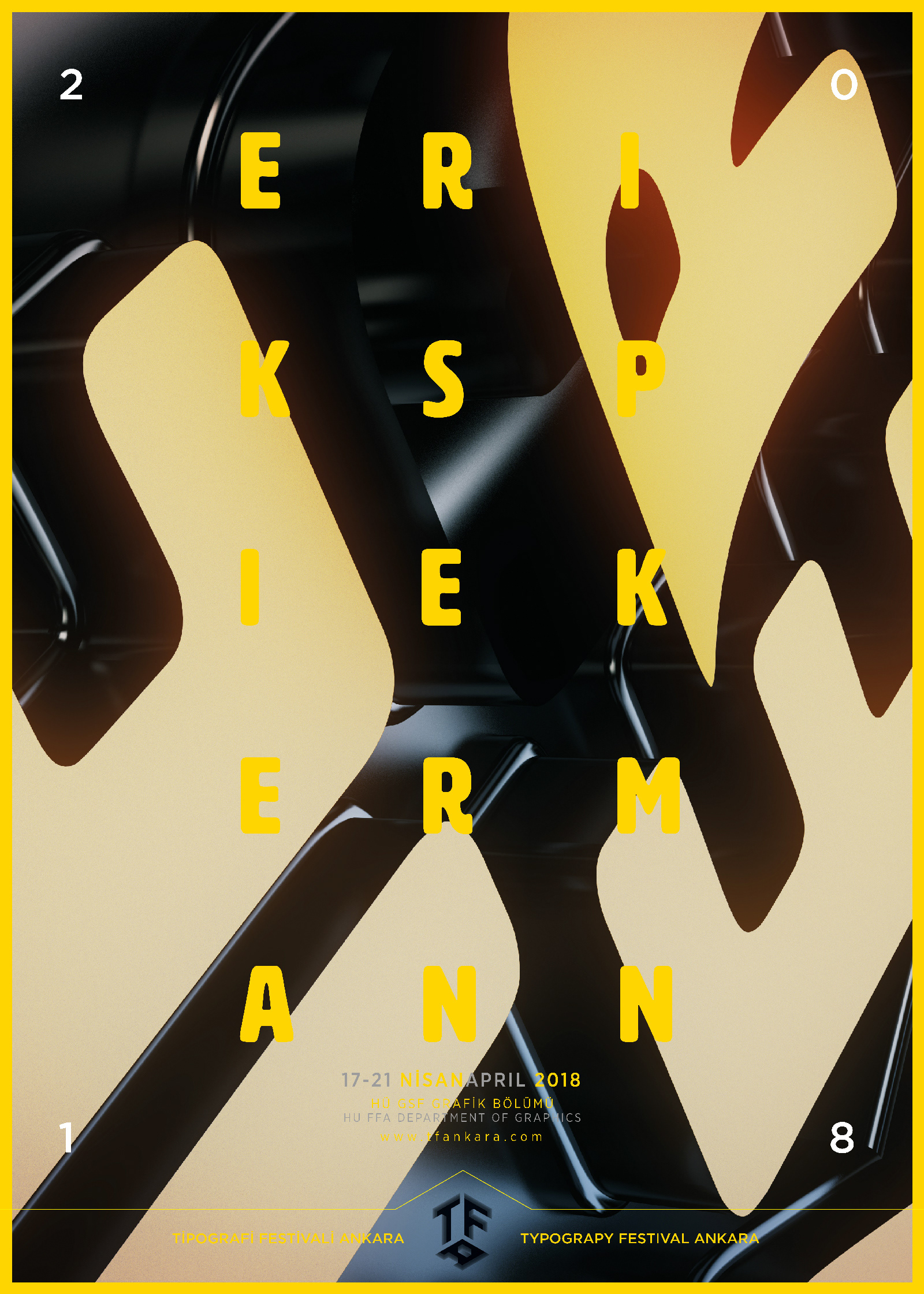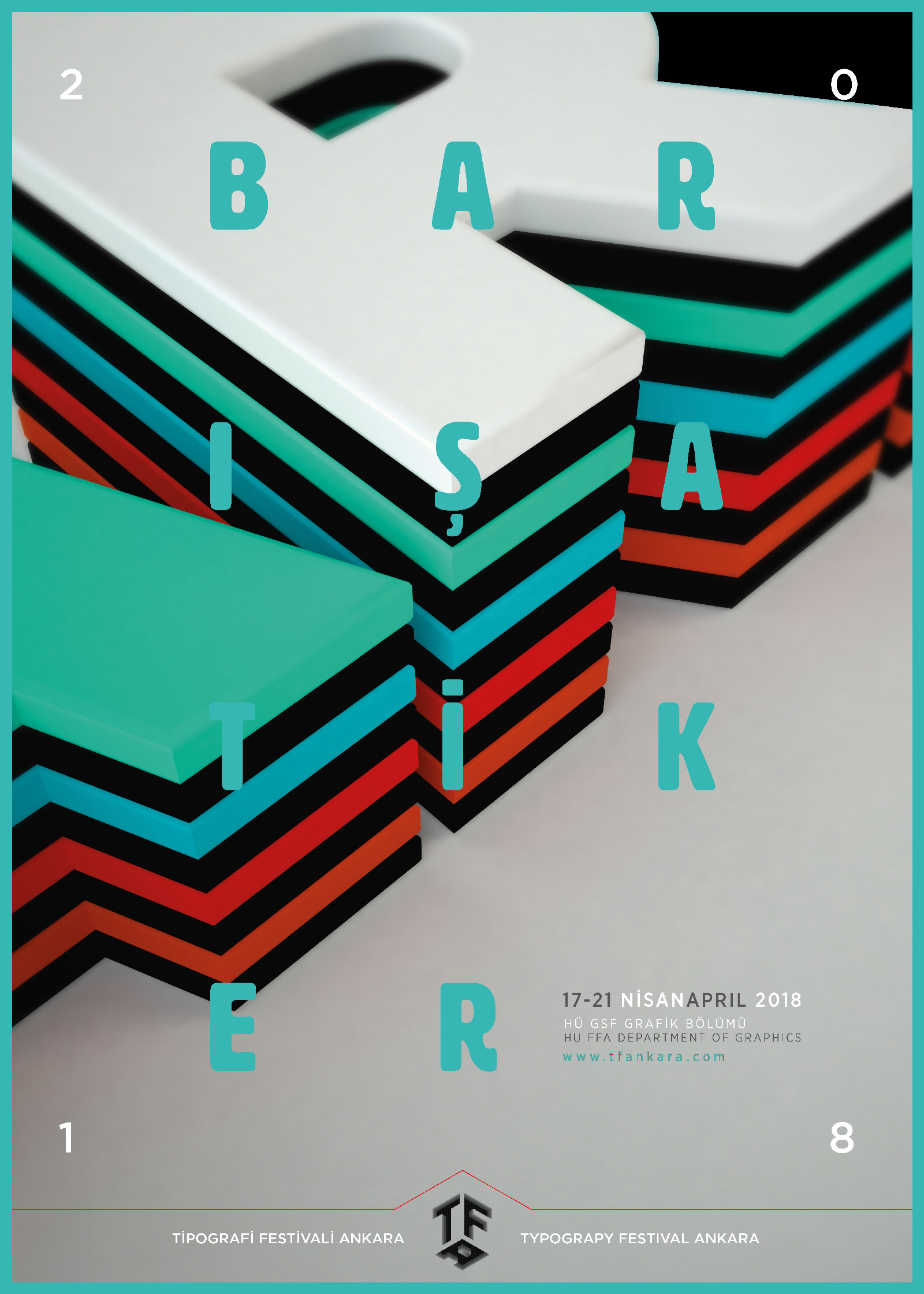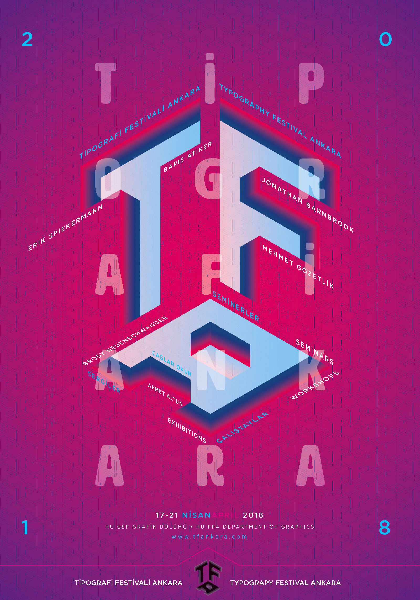 Tipografi Festivali Ankara, Doktora tezimde yaptığım uygulamadır. Üç Boyutlu Kinetik Tipografi çalışması olarak hazırlanmıştır. 7 farklı profesyonel ve akademisyenin katılması plananlanan kurgusal çalıştay için hazırlanan videonun yanı sıra afişler, arayüz tasarımı, isimlikler ve promosyon ürünleri tasarlanmıştır.